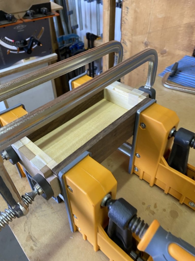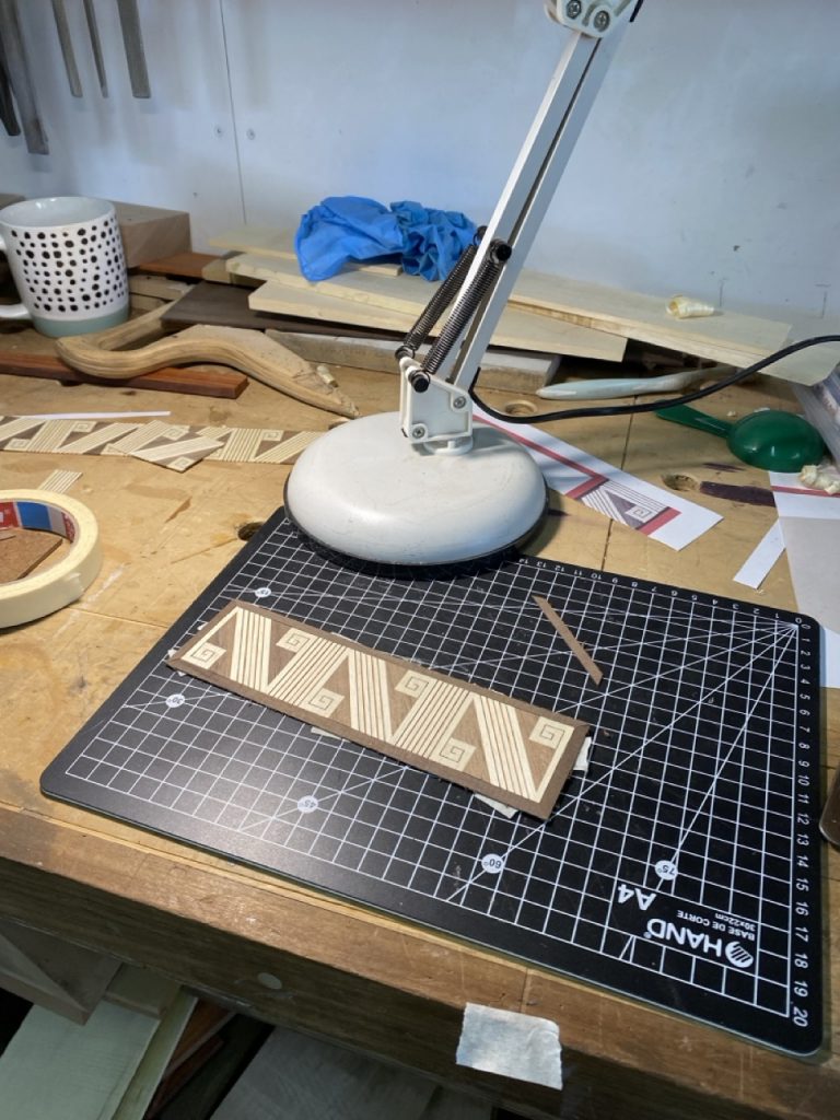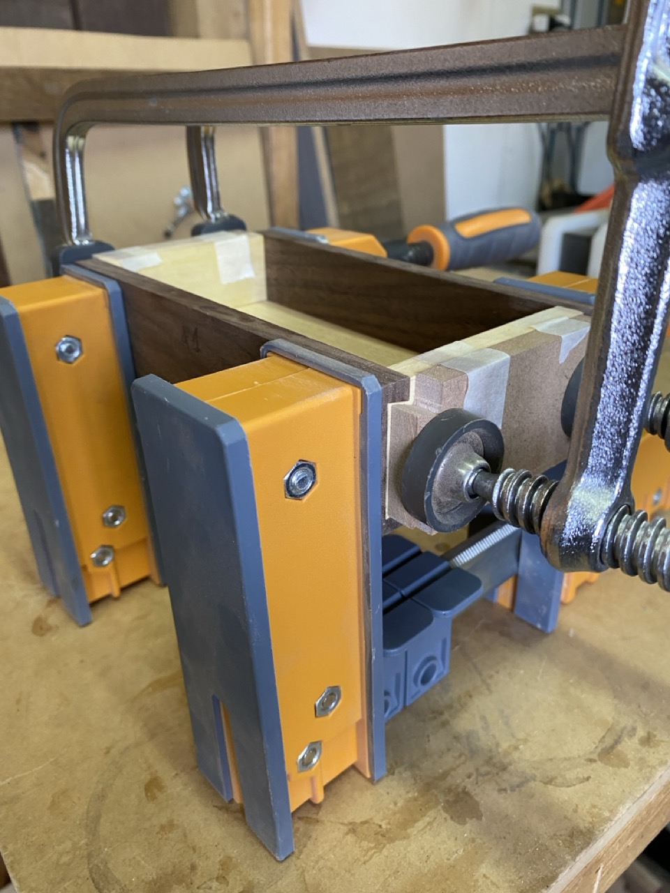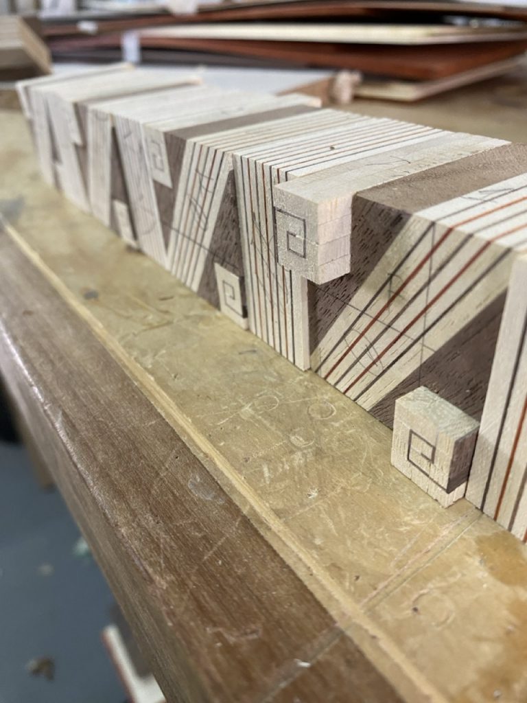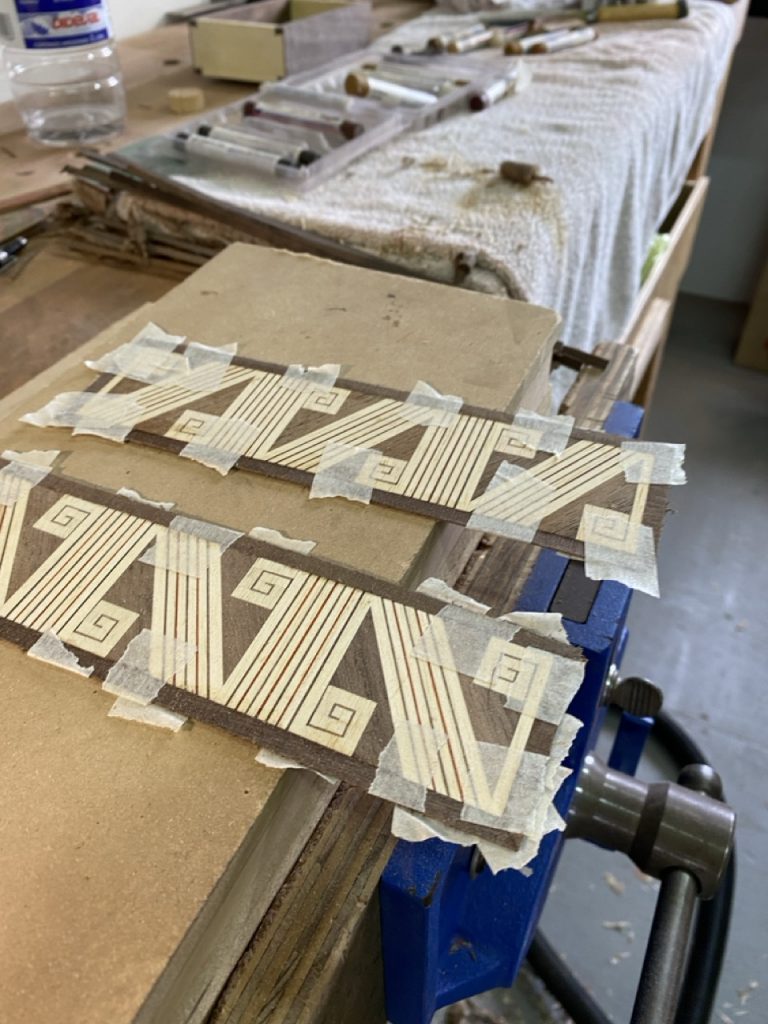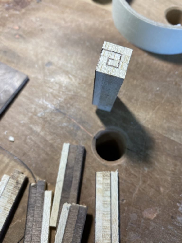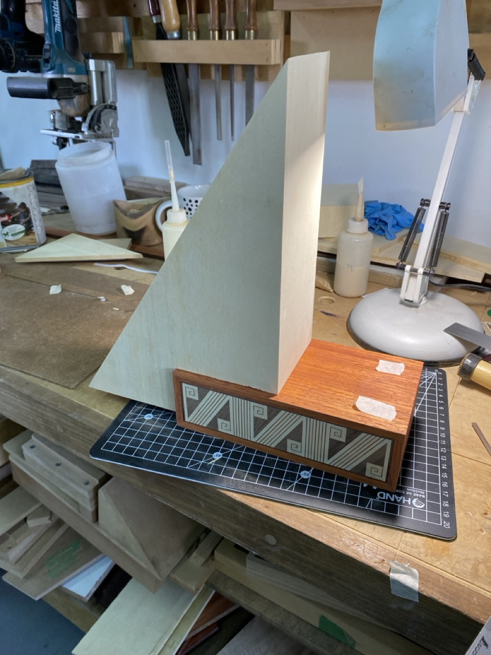 Cuerpo triángulo rectángulo: Uniones en 45º para cerrar el objeto y uniones de caja y espiga para adosarlo al casillero del cajón.