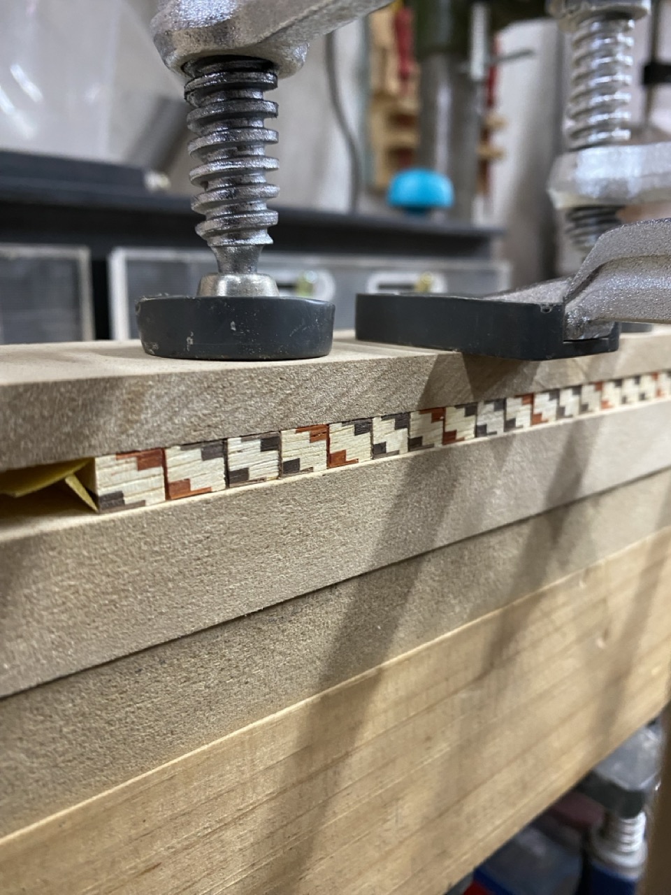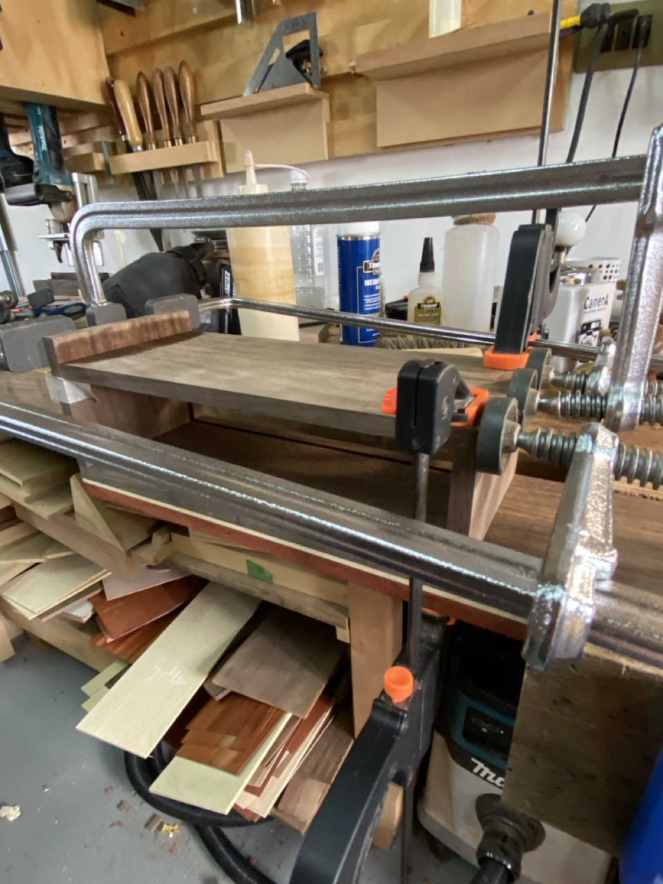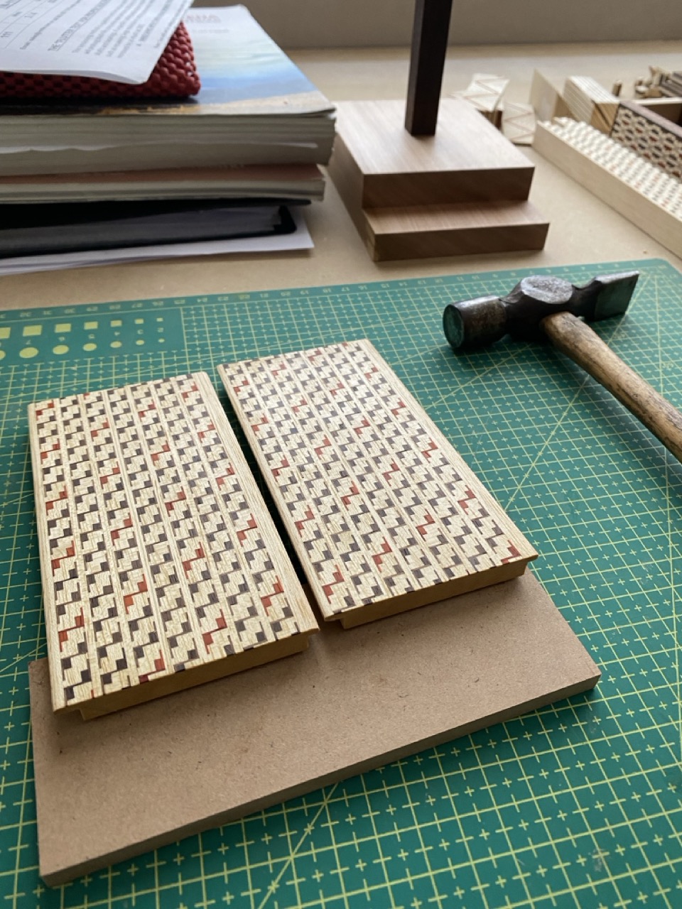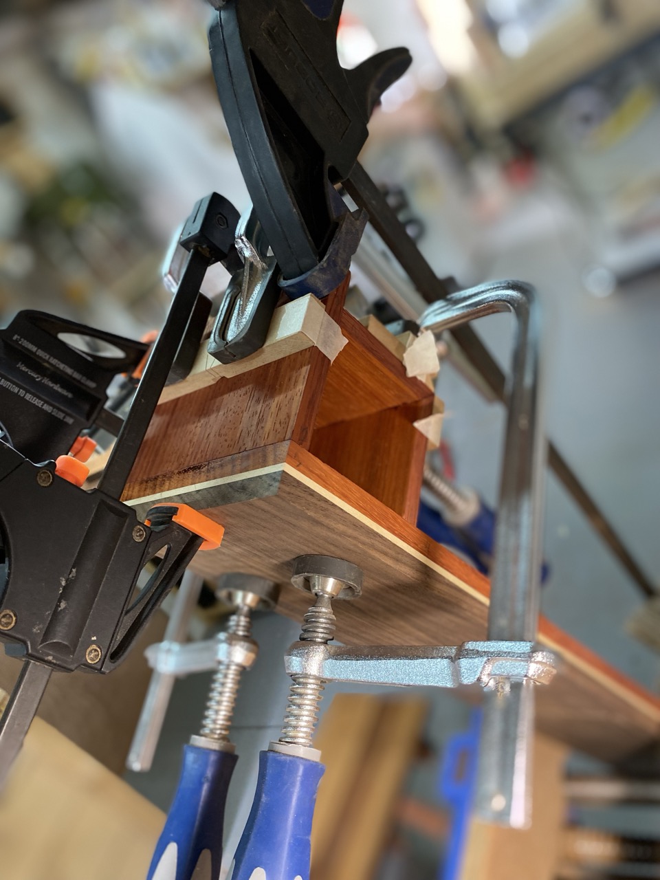 Cuerpo: Uniones de cajas y espigas pasantes con cuñas y colas de milano para los casilleros. Unión de cajas y espigas para adosar los casilleros al travesaño central.