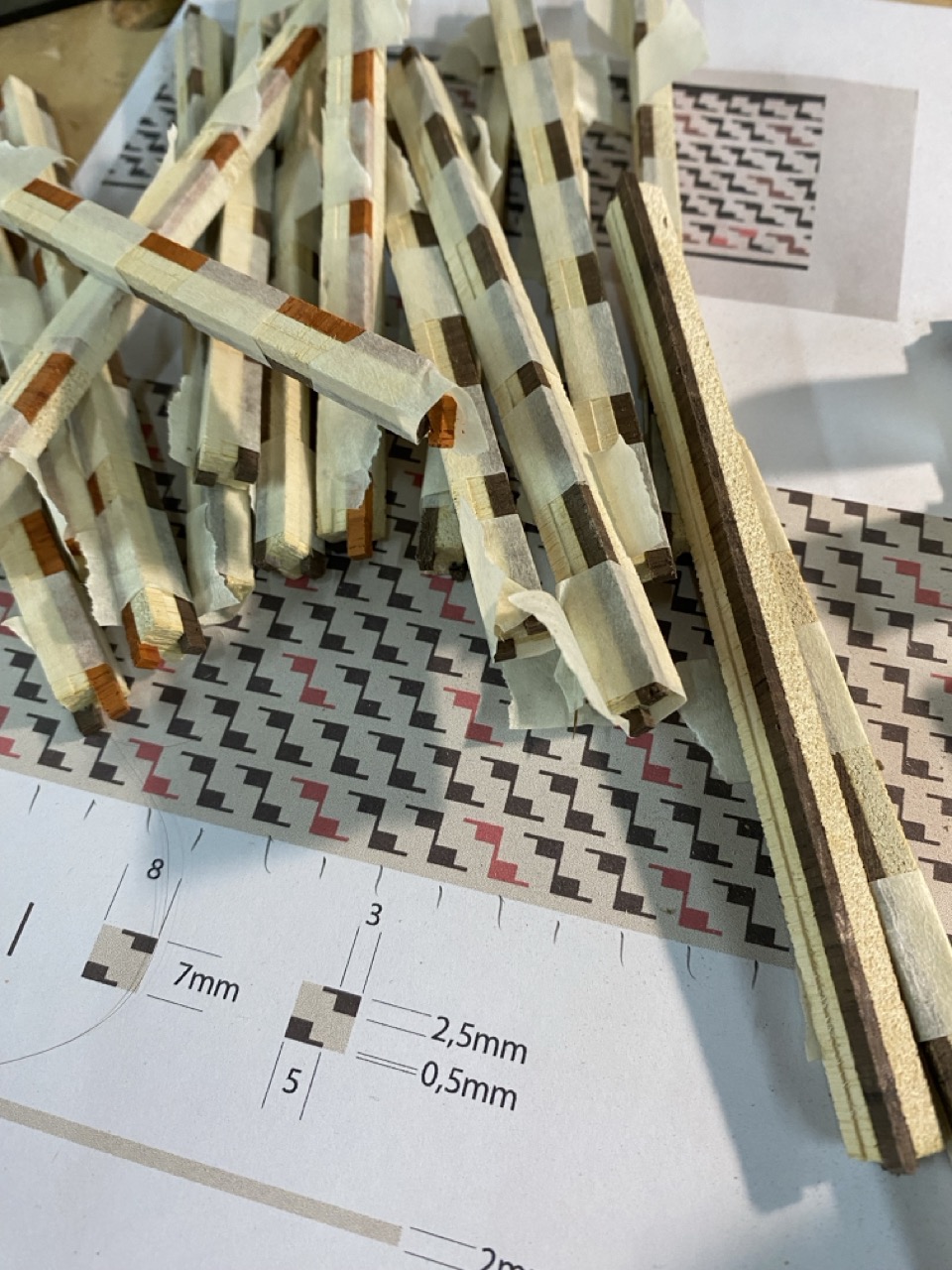 Esta sub variante presenta un patrón cromático que alterna una alineación horizontal de unidades mínimas de color negro seguida por otra, que presenta una unidad roja cada dos unidades mínimas negras.