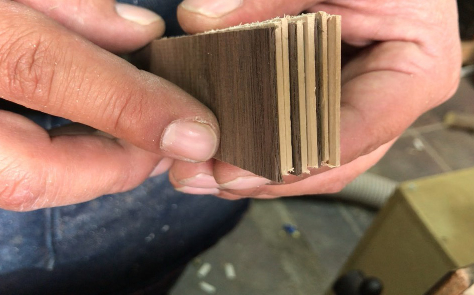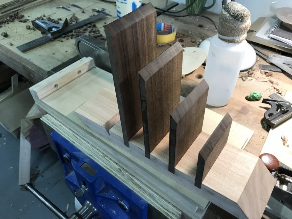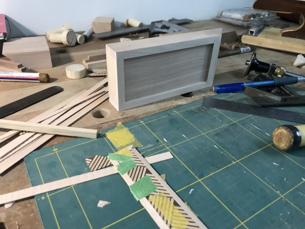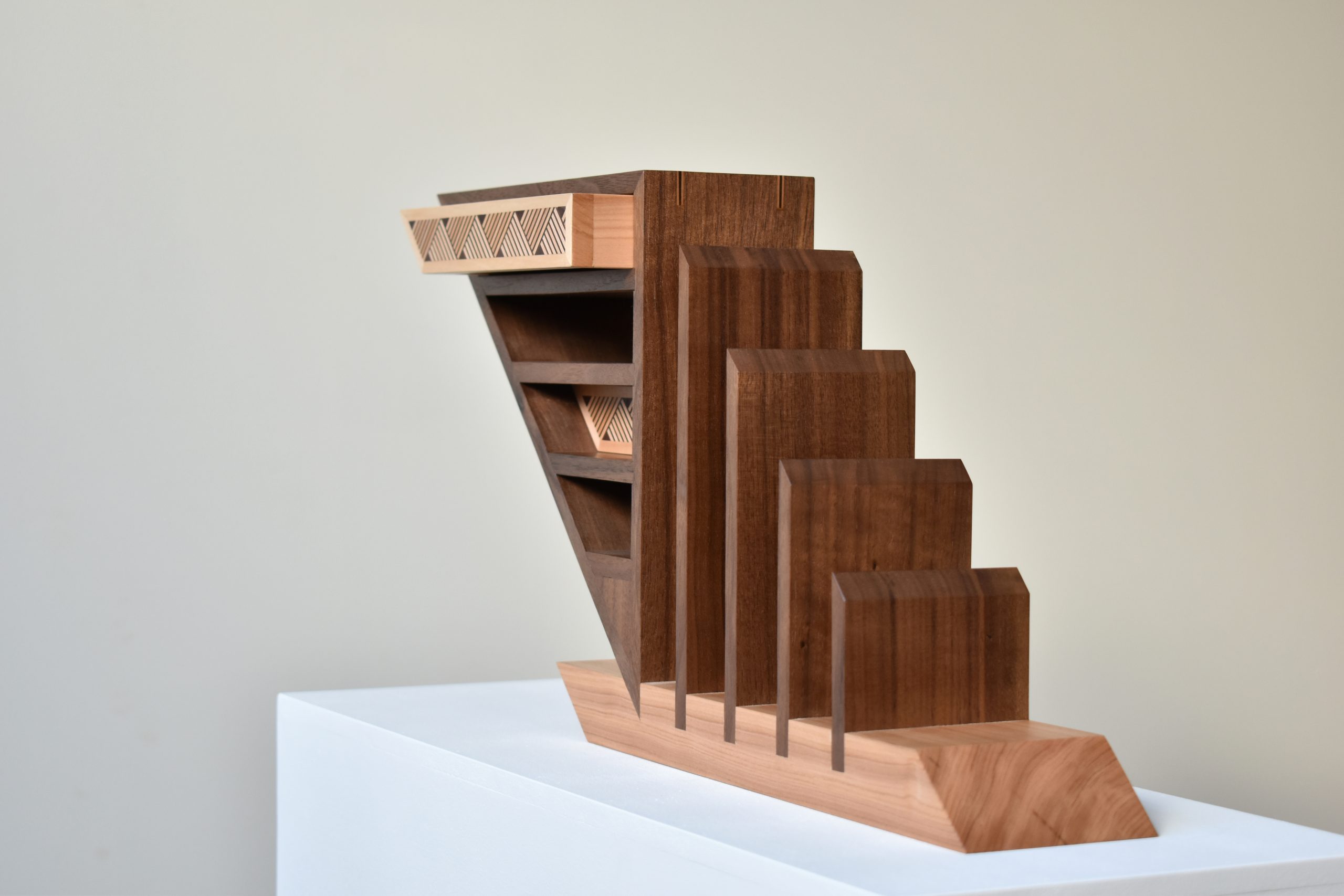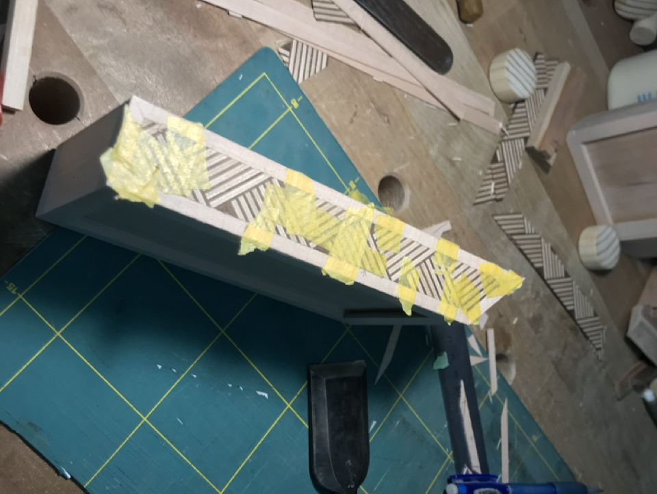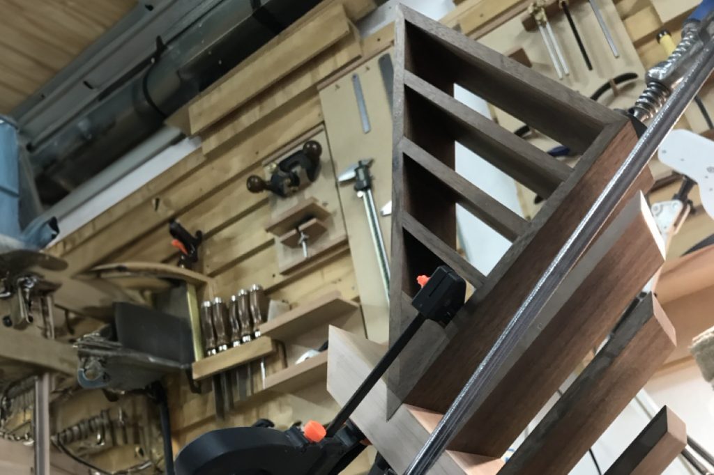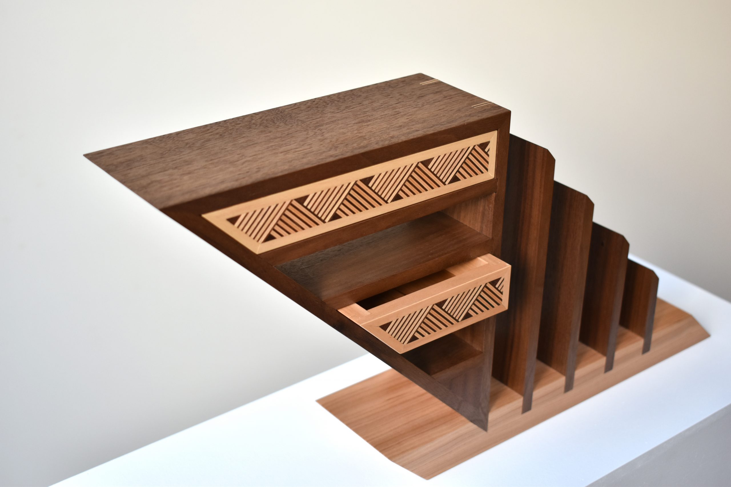 Cuerpo triángulo rectángulo: Uniones en angulo y refuerzos de insertos para las esquinas superiores, cajas y espigas para los listones divisores de los cajones y caja para la union del cuerpo a la base.